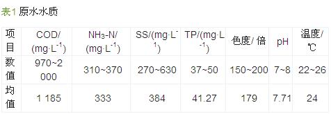 原水來自某生物制藥有限公司,該公司的綜合廢水處理采用“調(diào)節(jié)池+一級(jí)水解酸化池+CASS池+二級(jí)水解酸化池+接觸氧化池+二沉池”工藝,本試驗(yàn)用水取自該公司污水處理廠的一級(jí)水解酸化池出水,一級(jí)水解酸化池的進(jìn)水是經(jīng)過調(diào)節(jié)池和物理處理后的出水。該公司主要生產(chǎn)輔酶Q10,廢水主要污染物為生物發(fā)酵剩余的營養(yǎng)物質(zhì)、生物代謝產(chǎn)物等。原水的水質(zhì)水量變化較大,其成分復(fù)雜,碳氮營養(yǎng)比例失調(diào)(氮源過剩),硫酸鹽和懸浮物含量高,廢水帶有較重的顏色和氣味,易產(chǎn)生泡沫,含有具有抑菌作用的難降解物質(zhì)。原水水質(zhì)情況見表1。