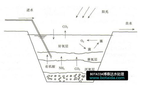 在傳統(tǒng)基礎(chǔ)上改進(jìn)的高效藻類穩(wěn)定塘比傳統(tǒng)的穩(wěn)定塘有更多的生物,并增加攪拌裝置,促進(jìn)污水混合;調(diào)節(jié)塘內(nèi)的氧氣和二氧化碳的濃度,及水溫和水質(zhì),從而提高有機(jī)物、氮和磷的去除率。高效藻類穩(wěn)定塘受光照、溫度、水深和塘內(nèi)流速的影響大。