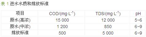 該工程設(shè)計處理能力為320 t/d,其中生產(chǎn)廢水約為80 t/d,車間沖洗水、生活污水 約為240 t/d,其水質(zhì)如表 1所示。