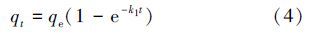 準(zhǔn)一級(jí)動(dòng)力學(xué)模型基于假定吸附受擴(kuò)散步驟控制,吸附速率正比于平衡吸附量與t時(shí)刻吸附量的差值,其速率方程為: