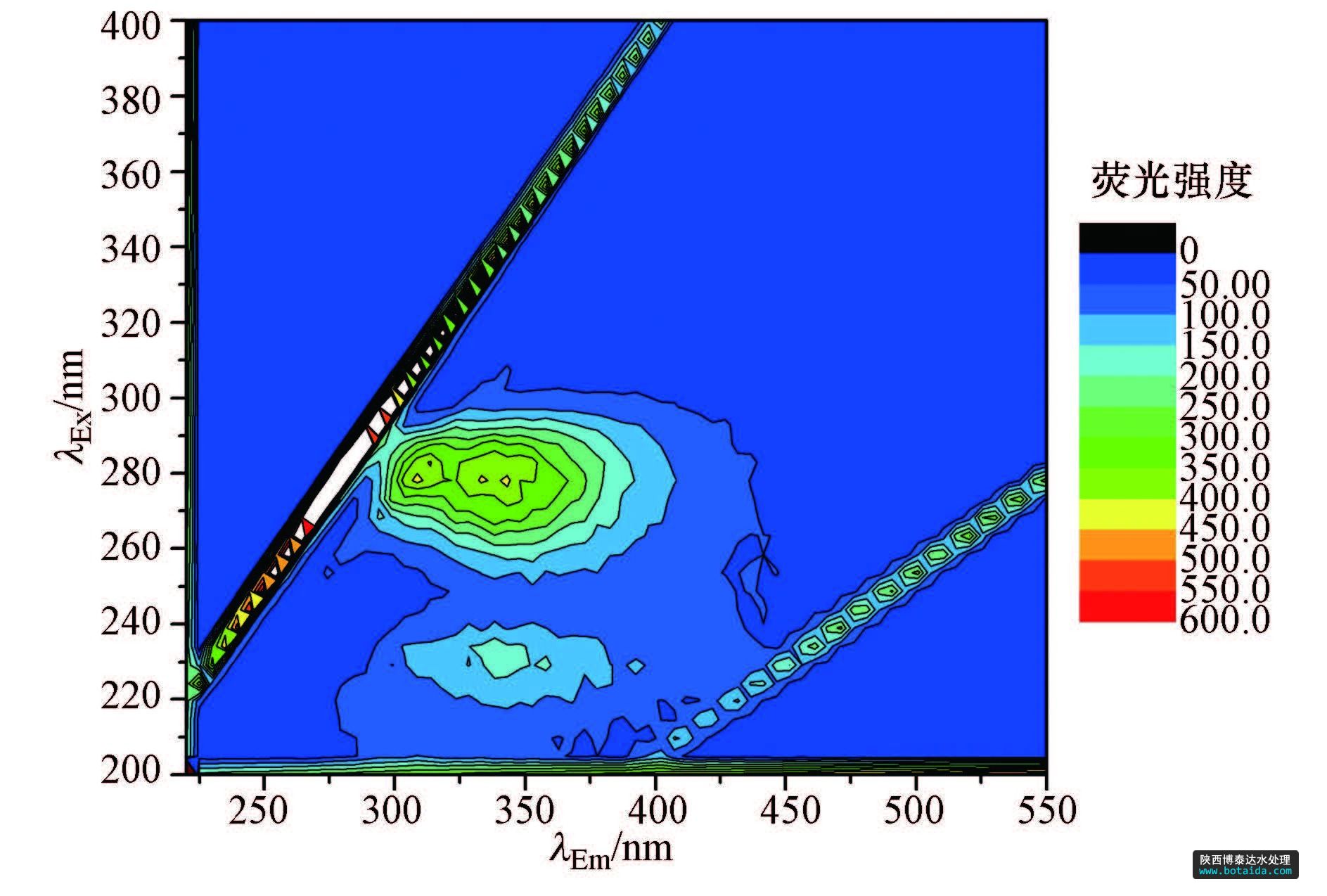 圖4 優(yōu)化工藝條件下污泥上清液的三維熒光光譜圖