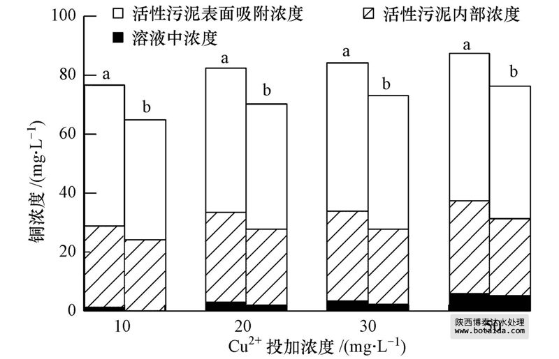 圖 5 四個(gè)SBRs中銅的分布情況(a.抑制穩(wěn)定期;b.恢復(fù)25周期后)