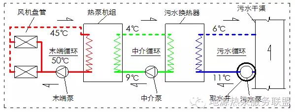 其中的技術(shù)關(guān)鍵是污水或地表水的高效換熱循環(huán),以及各子循環(huán)的有效匹配,實(shí)現(xiàn)系統(tǒng)的低能耗運(yùn)行,達(dá)到真真節(jié)能環(huán)保的目的。