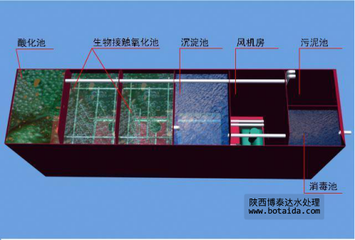 2、生化池采用生物接觸氧化法,其填料的體積負(fù)荷比較低,微生物處于自身氧化階斷,產(chǎn)泥量少,僅需三個月(90天)以上排一次泥(用糞車抽吸或脫水成泥餅外運)。