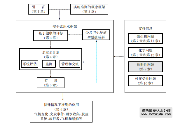 對(duì)于健康風(fēng)險(xiǎn)評(píng)價(jià)來說,本準(zhǔn)則對(duì)天然放射性同位素和人工放射性同位素同樣適用。但 對(duì)于風(fēng)險(xiǎn)管理,二者還是有些差別,因?yàn)閺睦碚撋?,人工放射性同位素在進(jìn)入供水系統(tǒng)之前是 可控的。相反,對(duì)于天然放射性同位素來說,在消費(fèi)者使用前,可在任何地點(diǎn)或多個(gè)地點(diǎn)都有 進(jìn)入供水系統(tǒng)的潛在可能性。因此,在飲用水中天然放射性同位素往往較難實(shí)施控制。