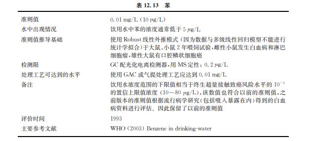 苯主要用于其他有機化合物的生產。苯存在于石油中。汽車尾氣是環(huán)境苯的主要來 源。苯有可能通過工業(yè)排放和大氣污染進入水體(見表12.13)