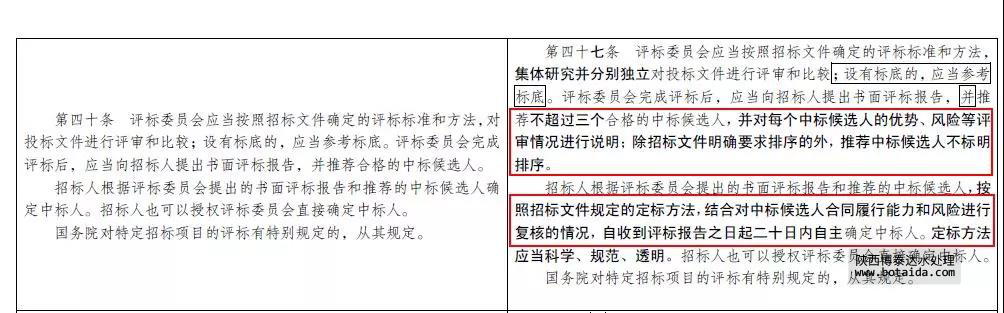 這意味著甲方有著更大的自主選擇權(quán),而評標委員會只推薦三個中標候選人,而且不用排序。也就是說,不會有第一中標候選人、第二中標候選人、第三中標候選之說。這也打破了評標委員會推薦的第一中標候選人默認為中標人的長期慣例。甲方只需要在三個中標候選人當中,自主確定中標人。