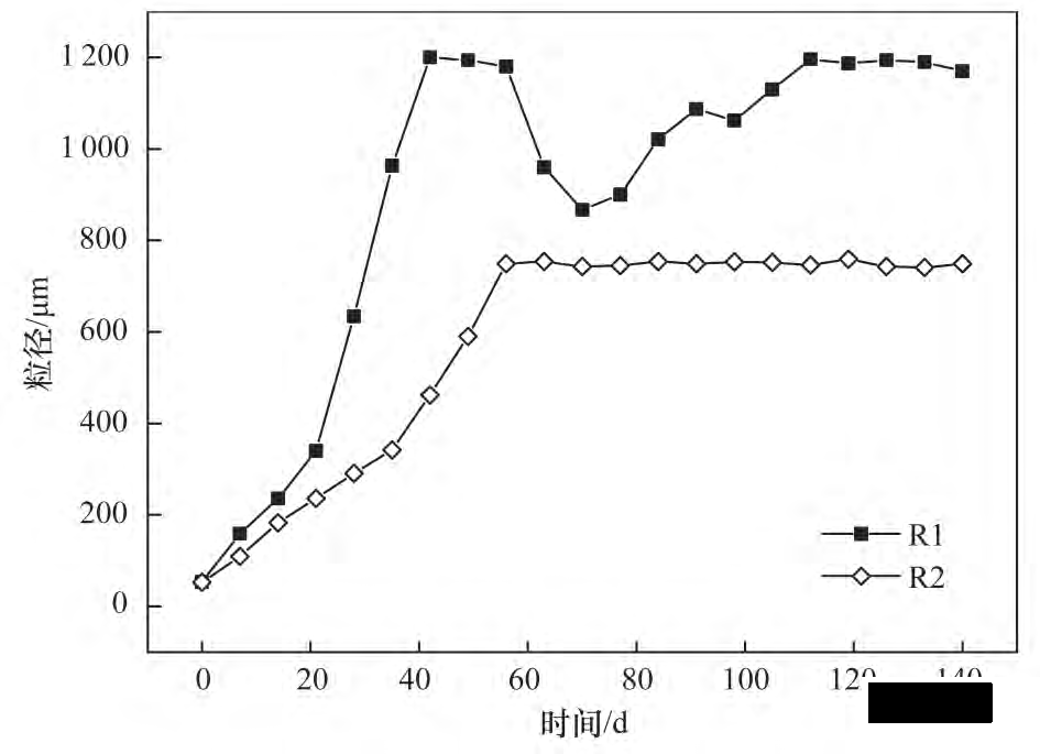 圖 2 R1 和 R2 運(yùn)行期間粒徑變化