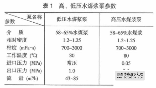 從制槳到氣化,裝置中比較關(guān)鍵的泵是高、低壓煤漿泵。表1為德士古工藝高、低壓水煤漿泵主要技術(shù)參數(shù)。