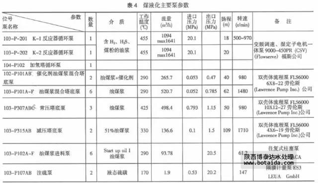 表4列出了煤液化主要泵參數(shù),這些泵當(dāng)時(shí)都是從國外進(jìn)口的,現(xiàn)在有些已能國產(chǎn),但還是有不少位號(hào)的泵需要通過技術(shù)攻關(guān)才能實(shí)現(xiàn)國產(chǎn)化。