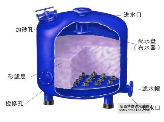 博泰達(dá)機(jī)械過濾器中采用了一種或多種的過濾介質(zhì),在一定的壓力作用下使污水通過介質(zhì),清除其中不必要的雜質(zhì),而其中填充的濾料一般為石英砂、無煙煤、錳砂等,可以根據(jù)實(shí)際的生產(chǎn)情況進(jìn)行選擇。