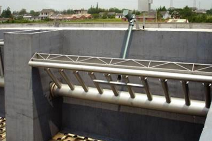 在堰口規(guī)定的負(fù)荷范圍內(nèi)、堰口下液面不會(huì)擾動(dòng)。堰口設(shè)有浮筒和擋渣板,確保出水水質(zhì)。