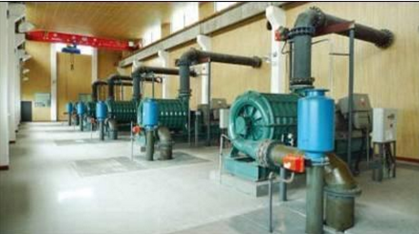 鼓風(fēng)曝氣設(shè)備:是使用具有一定風(fēng)量和壓力的曝氣風(fēng)機(jī)利用連接輸送管道,將空氣通過(guò)擴(kuò)散曝氣器強(qiáng)制加入到液體中,使池內(nèi)液體與空氣充分接觸。