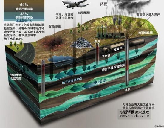 另一種則是工業(yè)級別的的滲坑排污,即用深井的排放工業(yè)污染物,利用常壓滲透或者高壓滲透的方式將生活污水或者工業(yè)污水向地下排放的行為,從地表根本就看不出有排放,似乎已經(jīng)將污水處理得非常完美,那么事實(shí)上這種行為對環(huán)境危害極大。