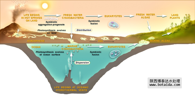 地球的年齡大約為46億年,地球上的海洋至少在38億年前就出現(xiàn)了,而且海洋中就有生命。至于陸地生命最早是什么時候產(chǎn)生的,目前仍然沒有定論,美國科學(xué)家在一些來自南非的巖石樣本中發(fā)現(xiàn)了細(xì)菌化石的有機物,時間定為大約在26億年前。